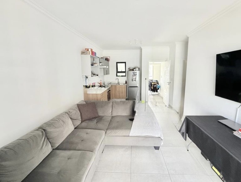 Fully fitted open plan kitchen that flows into the lounge onto the balcony with beautiful sunlight.