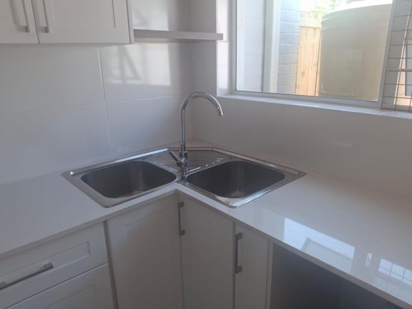 Stunning, newly fitted kitchen with double sink, quartz countertops, under-counter oven and as hob