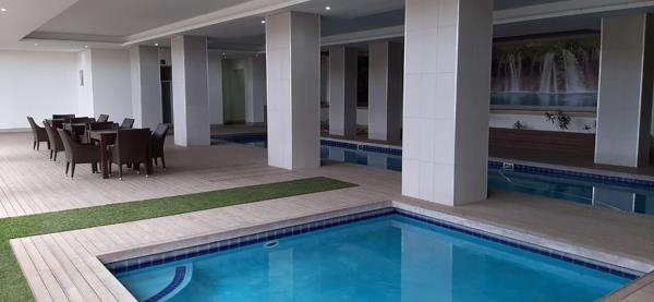This large upmarket three bed, three bath bedroom apartment is situated in a secure development on Umhlanga Ridge. Tiled floors feature throughout the apartment, onto an open plan living area with integrated kitchen, and a patio. All of the bedrooms have built in cupboards, as well as en-suite bathrooms fitted with glass shower suites. The large open plan living area certainly does accommodate a dining-suite and lounge-suite with accessories.. . The modern kitchen is integrated into the living area and features built in cupboards, ceasar-stone tops, which can also serve as a breakfast bar. Modern fittings in the bathrooms definitely enhance the unit. This gorgeous apartment comes with domestic quaters''. The architecture and design of this block fulfills all ones requirements. Style and comfortcheck. Two secure parking bays are available for the use of the residents of the apartment, who may also make use of the estate''s communal pool. Residents also have the convenience of driving up to the apartment and parking at our front-door.