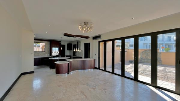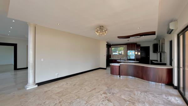 The lower level comprises of the huge, modern kitchen, the dining area that opens up onto a spacious balcony. The kitchen is accompanied by a scullery and laundry. The upper level consists of five well-presented bedrooms, with en-suite bathrooms, all with modern fittings and san-ware. Almost all bedrooms open onto spacious balconies, with stunning views.