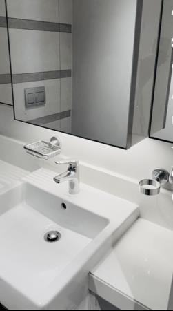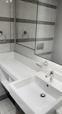 Bathroom 2: A stylish and functional space with a shower complemented by mirrors strategically placed around the walls , creating a sense of brightness.