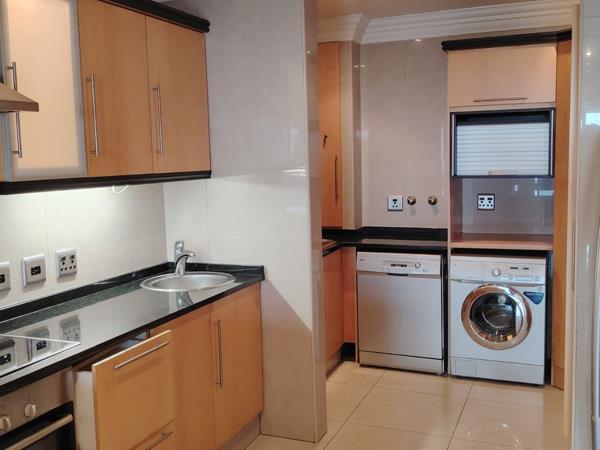Open-Plan Living: The heart of this apartment is its beautifully designed open-plan living areas. The modern kitchen, dining room, and lounge flow seamlessly together, perfect for entertaining family and friends. The kitchen is equipped with high-end appliances including a dishwasher, extractor fan, eye-level oven, fridge, stove, tumble dryer, and washing machine, making everyday living effortless.