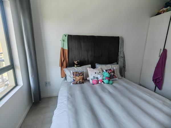 The unit is tiled throughout with an open plan living space and fully fitted kitchen. The kitchen offers ample cupboard and cabinet space, electric stove and connection for your washing machine.There is also a balcony to entertain guests or enjoy some outside time. The complex also offers a communal pool and gym for tenants to enjoy within the complex.