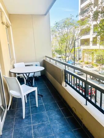 Situated on the first floor, the apartment opens into a sleek galley style kitchen that flows into a bright and airy living area, extending out to a private balcony. The unit is fully tiled throughout, with both bedrooms featuring built-in cupboards. The main bedroom is well-appointed with ample storage, and the apartment includes one secure undercover parking bay. Utilities are excluded from the rental.