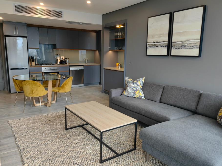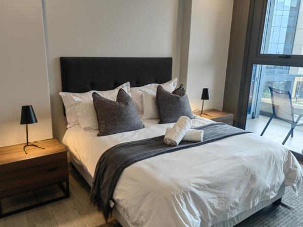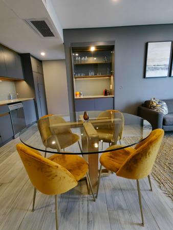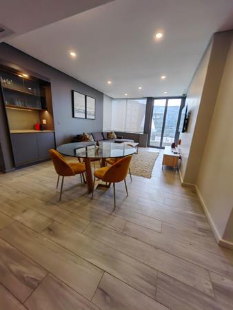 Two Bedroom North Facing Unit at Umhlanga Arch. Fully Furnished two bedroom apartment is located within the iconic Umhlanga Arch Development, this residence promises the epitome of luxury and comfort. 2 Bedroom 2.5 Bathroom apartment is an ideal lock up and go. The Open plan living area and large kitchen has been fully equipped to move in. This unit includes 2 secure undercover parking bay, Central AC, and biometric security access to building.