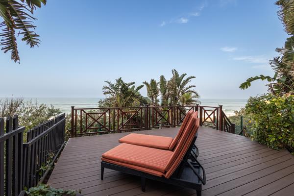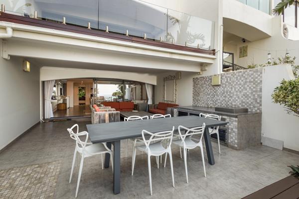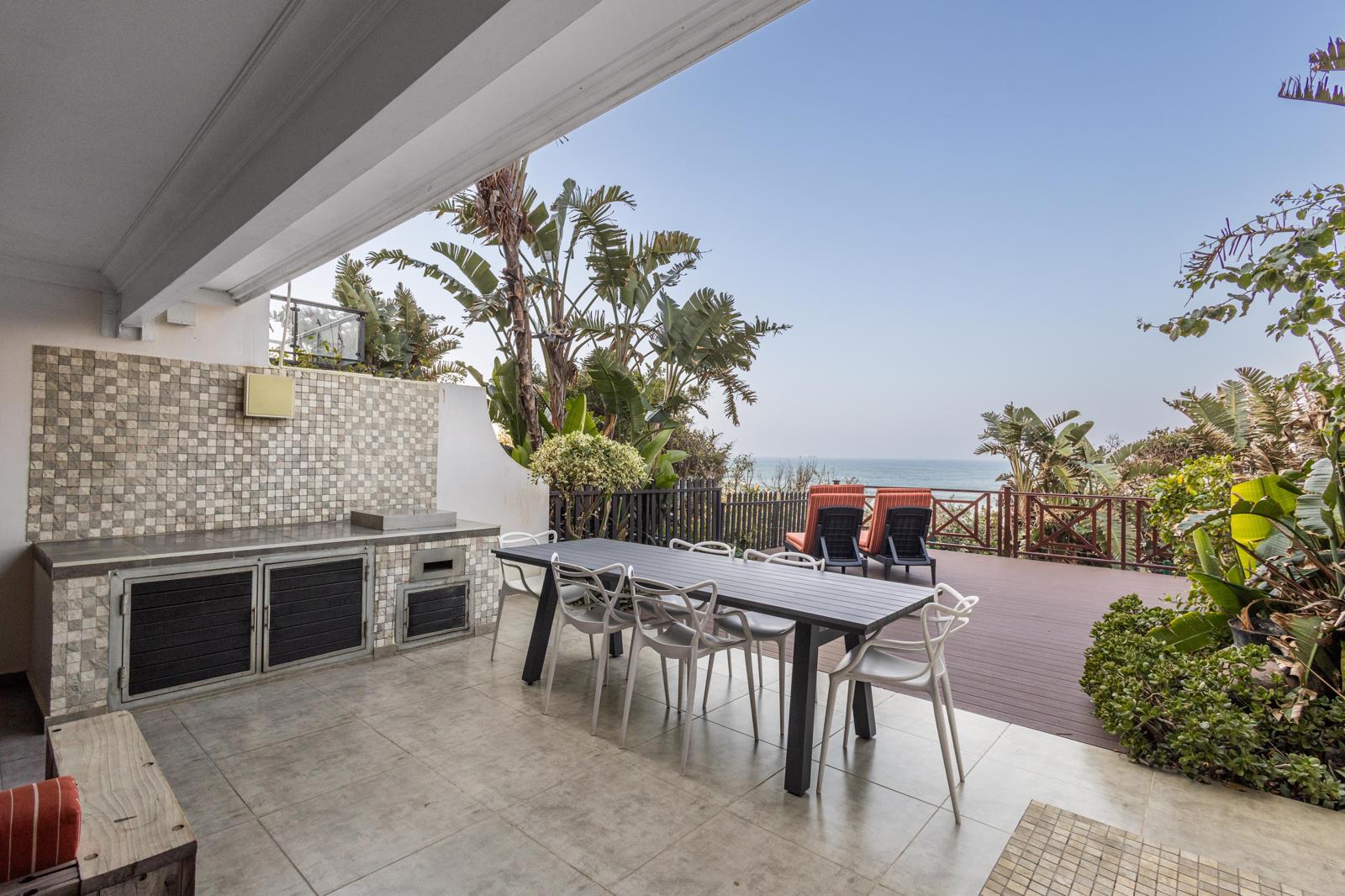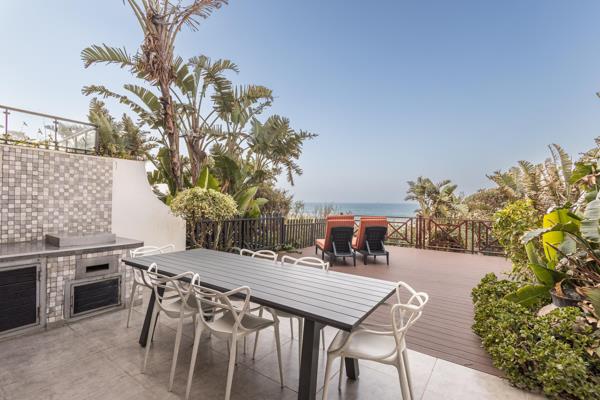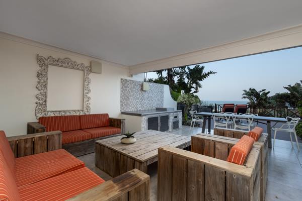 This ground floor duplex apartment has a patio with a private garden and braai facilities, lovely sea views, open plan lounge and dining area and kitchen with fridge/freezer, microwave, oven, dishwasher, crockery and cutlery.