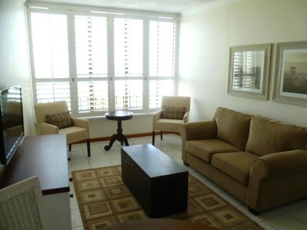 The Breakers Hotel is based in Umhlanga Rocks, Lagoon Drive. This is a two bedroom (1 x queen and 2 x single beds), one bathroom (shower only) fifth floor unit. This apartment has views overlooking the front communal gardens with slight sea views,there is no balcony. An open plan lounge and dining area and kitchen with fridge/freezer, microwave, oven, crockery and cutlery. The unit has air-conditioning, linen and bath towels are provided however beach towels are not. The access to the unit is down a ramp or stairs to the third floor and up via lift/stairs to the fifth floor. There is one undercover parking and open parking and parking for trailers (subject to availability). There is direct beach access from the property. The unit is serviced Monday to Saturday (excl public holidays). One has access to all the Hotel facilities