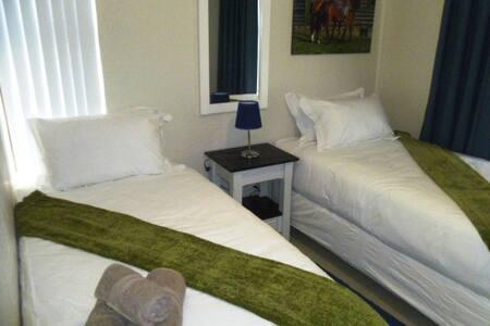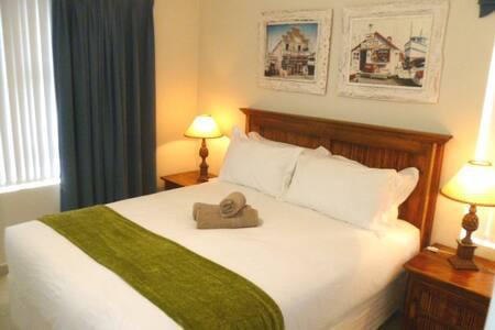 This apartment accommodates a maximum of 4 guests in 2 bedrooms. The main bedroom, en-suite, has a Queen size bed . The second has 2 single beds. Quality bed linen and bath towels are provided.