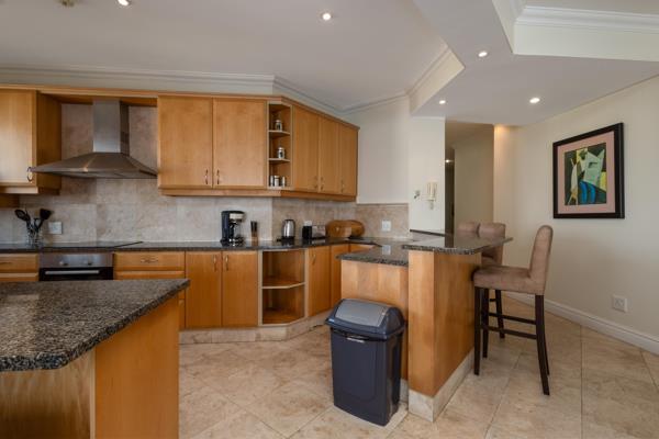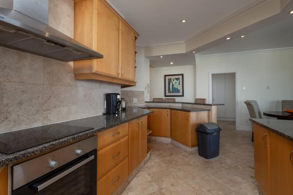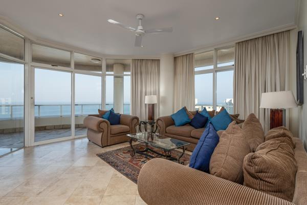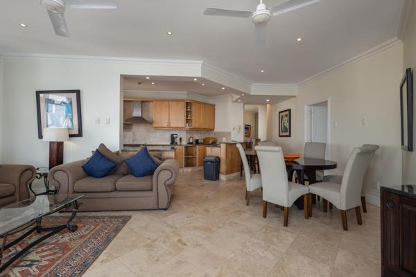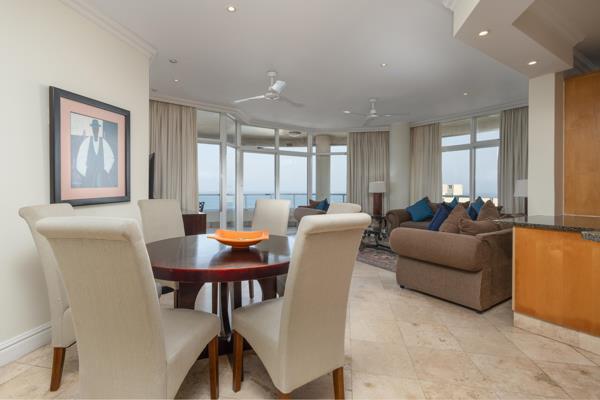 The open plan living room / dining area is comfortably appointed. The modern furnishings lends itself to a comfortable time there. One can enjoy enjoying your morning coffee or evening cocktails, with breathtaking sea views, on the balcony which leads off the lounge and all 3 bedrooms