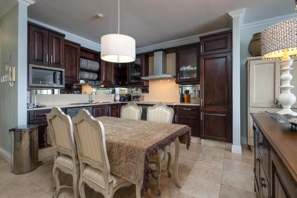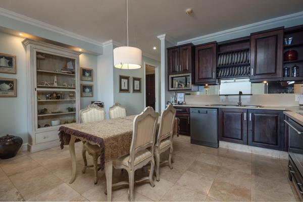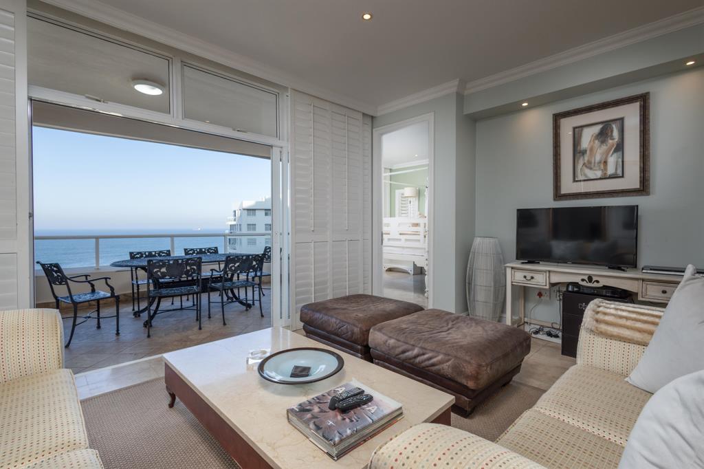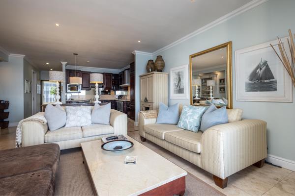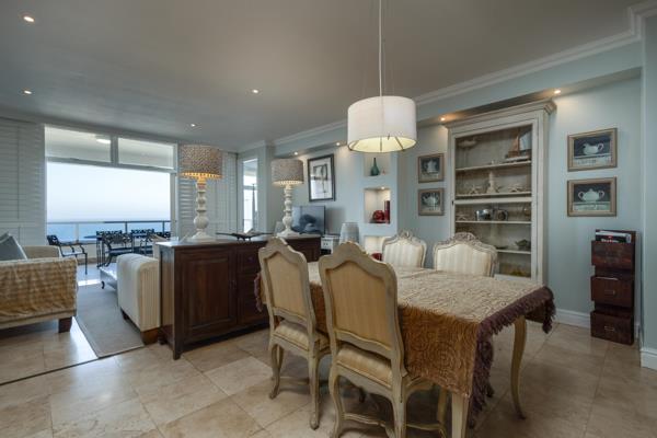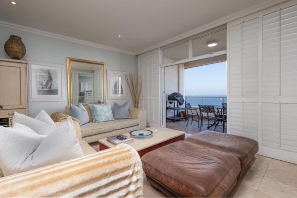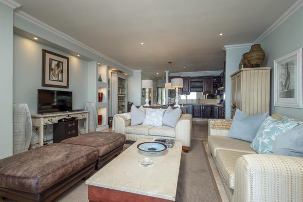 The open plan living room / dining area is comfortably appointed. The modern furnishings lends itself to a comfortable time there. One can enjoy enjoying your morning coffee or evening cocktails, with breathtaking sea views, on the balcony which leads off the lounge area