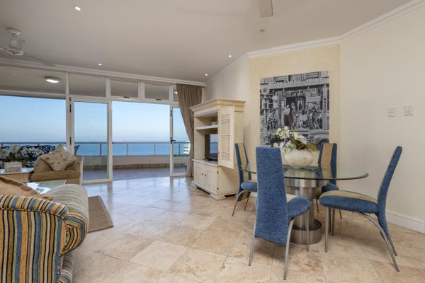 The open plan living room / dining area is beautifully appointed. The modern furnishings lends itself to a comfortable time there. One can enjoy enjoying your morning coffee or evening cocktails, with breathtaking sea views, on the balcony which leads off the lounge area
