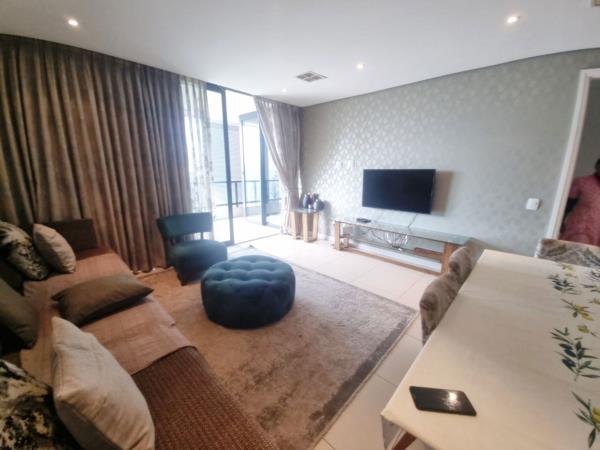 Modern 3-Bedroom Apartment for Rent in The Hub of Umhlanga Rocks. This beautifully furnished, modern apartment offers bright, airy living spaces with a fully equipped kitchen featuring a gas stove, flowing seamlessly into the cozy living area. Step out onto a spacious balcony, perfect for enjoying the outdoors.