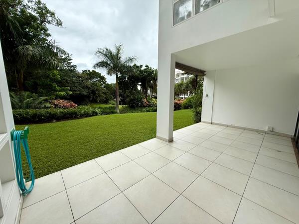 Spacious apartment in the heart of Umhlanga. This lovely ground floor apartment has a beautiful patio and spacious open plan lounge/dining room with a large entrance hall, direct access to the garage as well as a laundry room, 3 nice sized bedrooms and 2 modern bathrooms (main-en-suite).