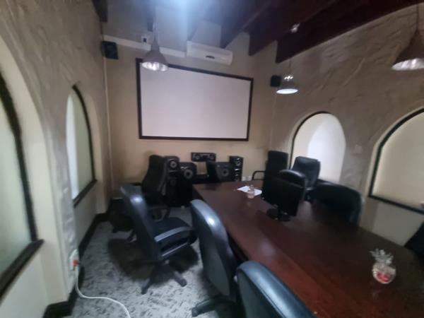 Bar and Lounge: A cozy space leading up to a dining and conference room, ideal for meetings or entertaining guests.