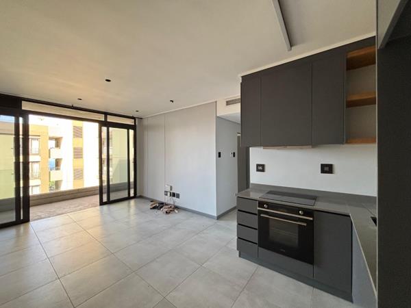 The open-plan kitchen and living area is a masterpiece of modern design, seamlessly integrating functionality with elegance. High-end finishes, sleek cabinetry, and premium countertops create a sophisticated yet inviting space, perfect for casual evenings or entertaining guests. The layout flows effortlessly into the lounge, where floor-to-ceiling windows bathe the apartment in natural light, offering a warm and airy ambiance throughout the day.