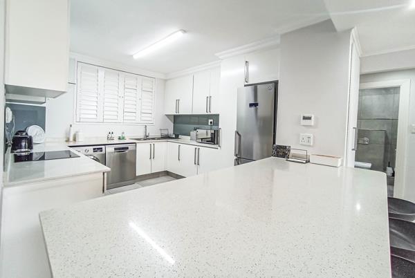 This stunning refurbished unit has an open plan white granite kitchen, lounge and dining area that leads out onto a massive patio with retractable blinds. Beautiful views.