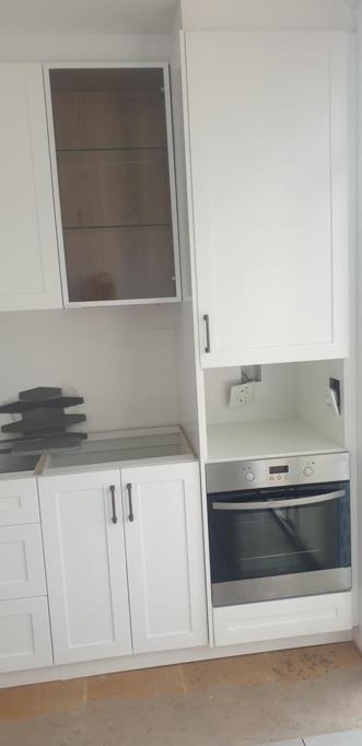 Semi-furnished: comfortable settee, side table, 2-plate gas stove and separate electric oven