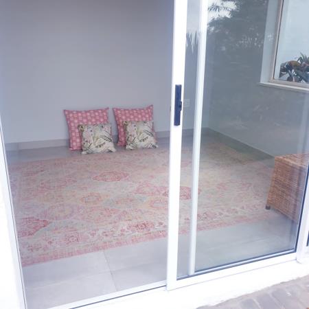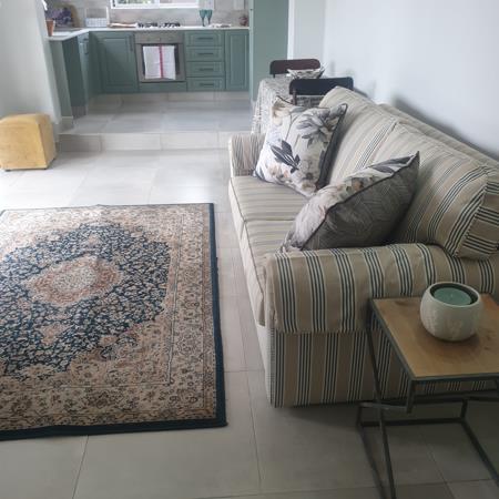 The cottage comes semi-furnished and features an inviting open-plan layout with a modern kitchen fitted with a gas hob and electric oven, plus plumbing and space for a washing machine. The air-conditioned living area ensures year-round comfort, while the gas geyser provides efficient hot water on demand.