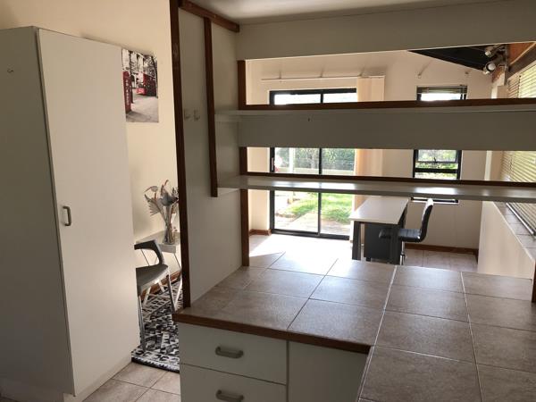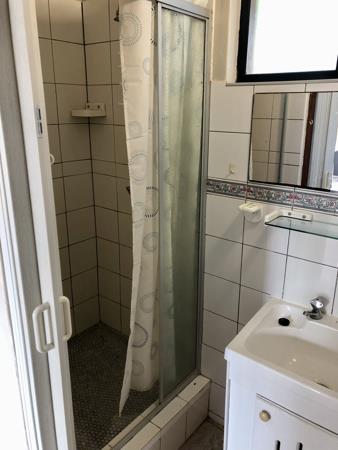 Neat and cozy one-bedroom flat situated in a private yard, ideal for a single person or couple. The flat offers an open living space with a shower and toilet, plus access to a separate laundry room for convenience.