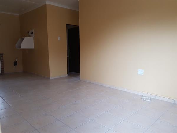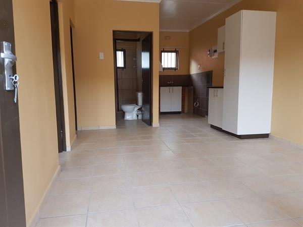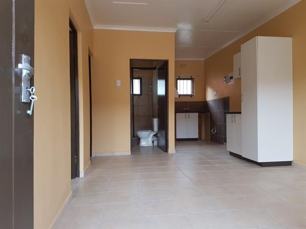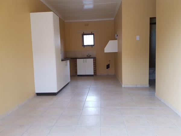 Neat and tidy garden flat boasting 2 bedrooms with built-in cupboards, a fitted kitchen, a neat bathroom, and an open-concept living area.