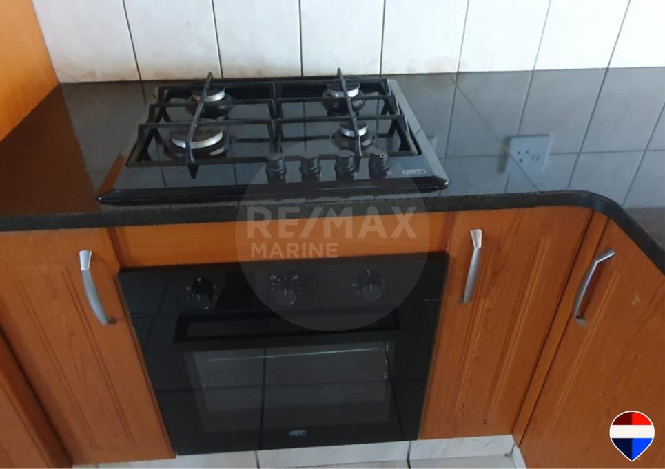 Discover comfortable living in this inviting 2-bedroom, 1-bathroom apartment located within a well-maintained complex in Meer En See, Richards Bay. Spanning a generous 105 square meters, this residence offers a practical layout designed for modern convenience. The heart of the home features a functional kitchen equipped with classic wooden cabinetry, durable dark granite countertops, and an integrated gas hob and oven, perfect for culinary enthusiasts. Tiled backsplashes ensure easy maintenance, while ample storage is provided by various cabinet types, including a tall pantry unit.