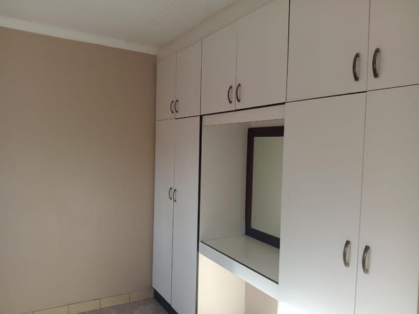 A neat and private one-bedroom granny flat is available for rent in the quiet and convenient area of Wild en Weide. This unit is ideal for a single working professional or a working couple. It features one spacious bedroom, a kitchen please note there is no stove, and a bathroom fitted with a shower, toilet, and basin. One secure parking space is available. Water and electricity are included in the rent.