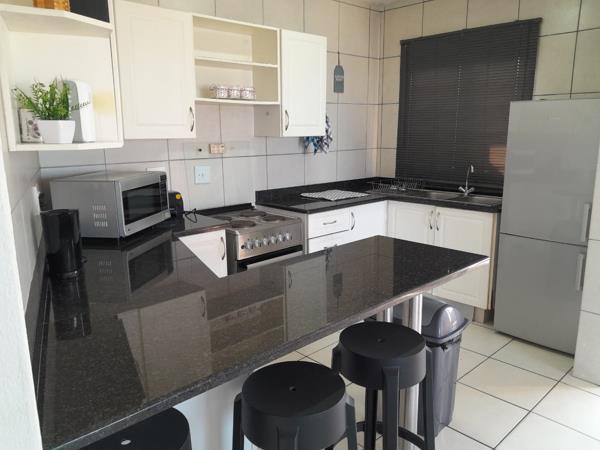 Ithaca 14 is a furnished self-catering unit and contains of 2 bedrooms, 2 bathroom and can accommodate up to 4 guests. The main bedroom contains a double bed and an en-suite bathroom. The second bedroom contains 2 single beds. The lounge and kitchen is an open area. Guests need to bring their own standard Dstv decoder, card, and power supply or an Open-view decoder and its power supply. The first bathroom is an en suite and contains a toilet, a wash basin, and a bath. This second bathroom contains a shower, toilet, and wash basin. The kitchen is well-equipped for self-catering with a stove and oven, fridge-freezer, microwave, kettle, and toaster.