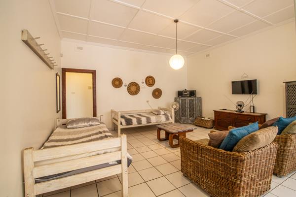 This self-catering house is suited to accommodate 15 guests, max of 8 adults and comes equipped with 4 bedrooms and 2 bathrooms. Bedrooms 1 and 3 both feature a queen-size bed, bedroom 2 features a double bed and 2 single beds and bedroom 4 features 2 single beds. There are 2 single beds in the lounge area and then we have a 2 single sleeper couches for 2 small kiddies, and another single bed close to the entrance of the house. Bathroom 1 is fitted with a bath and shower and bathroom 2 is fitted with a bath with an overhead shower. Other in-room facilities include 2 kitchens, lounge areas, a dining area, and a TV. Guests must please bring their own decoder for DStv. This unit also comes equipped with a braai area and its own private entrance.
