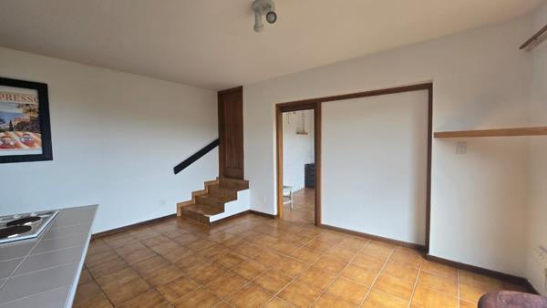 - Open-plan tiled kitchen and living area