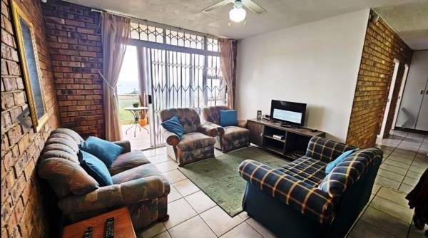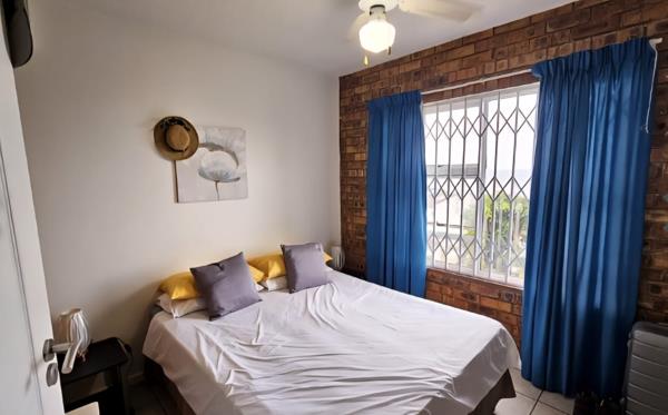 Discover this inviting 98 sqm furnished apartment, perfectly positioned within a secure gated community in Margate, South Africa. This coastal rental offers two comfortable bedrooms and two bathrooms, including a convenient en-suite. The open-plan living area, featuring charming exposed brick accent walls and practical tiled flooring, seamlessly connects to a well-equipped kitchen, ideal for everyday living. Large glass sliding doors invite abundant natural light and provide direct access to the expansive balcony.