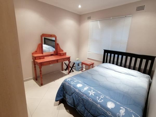Semi-furnished modern 2 bedroom , 2 bathroom unit in a secure complex, has a balcony with distant sea views. There is a communal pool with a built-in braai area. The unit has a single garage that fits 2 vehicles. Rent excludes electricity, water, refuse, sanitation & basic charges. No pets. No smoking inside the unit. Pre- Approved clients to view