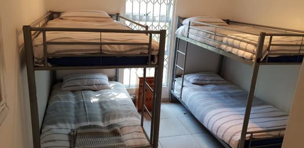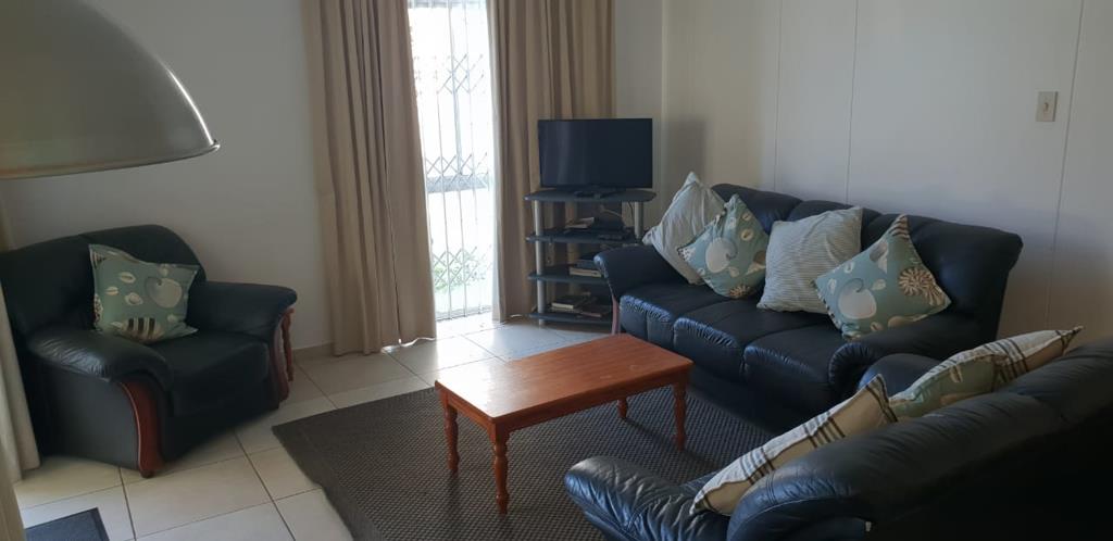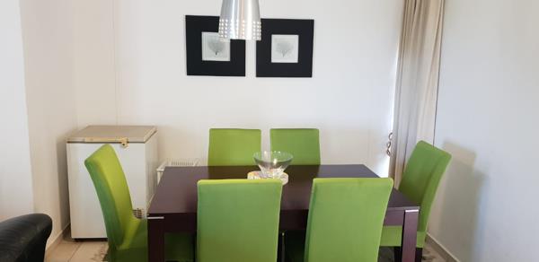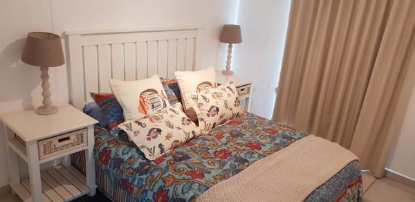 The kitchen is well-equipped for self-catering with a stove and oven, fridge, microwave, washing machine, tumble dryer, and dishwasher. There is a 6-seater dining table and chairs. The lounge contains couches and a flat-screen TV with a DStv connection, should you wish to bring your own decoder and smart card.