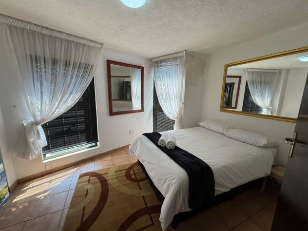 The kitchen is fully equipped for self-catering, while the lounge area opens onto a private balcony Guests have access to a designated parking bay, with additional visitor parking available. The complex also offers a communal braai area for outdoor cooking and socializing.