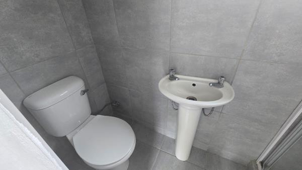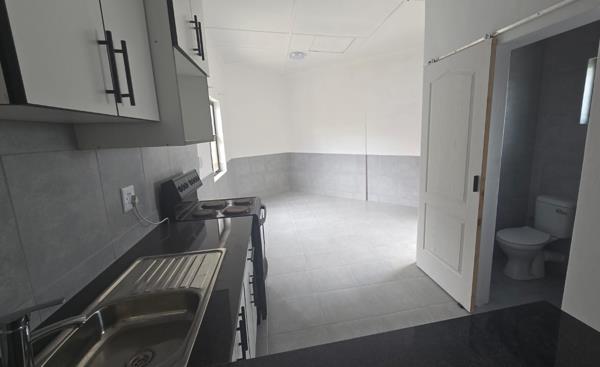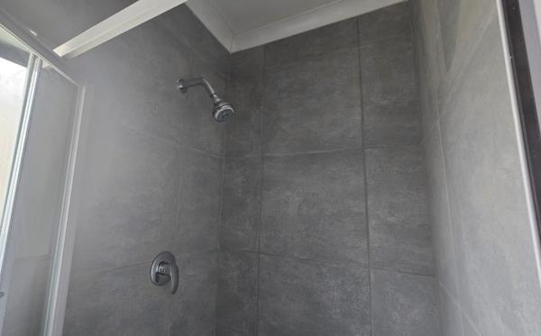 This modern 2-bedroom, 2-bathroom rental unit offers a contemporary living experience in Shelly Beach. The open-plan layout seamlessly connects the living area with a newly renovated kitchen. The kitchen features crisp white cabinetry, dark countertops, a tiled backsplash, and an electric stoveoven, providing a functional space for daily needs. The neutral grey and white finishes throughout create a bright and inviting atmosphere.