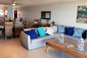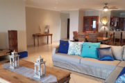 The apartment boasts a patio with outdoor dining space for 6 people and is equipped with a gas braai and a sea facing views. The complex offers a double lock-up garage for 2 vehicles. Additional guest parking is available on a first come, first serve basis.