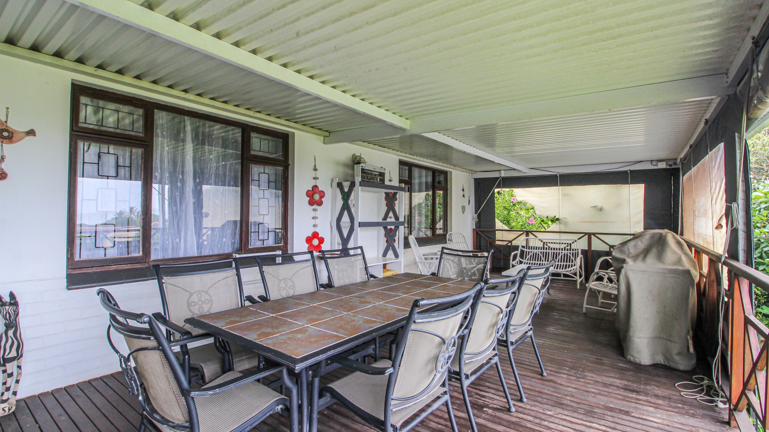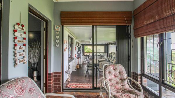 The living area opens onto an enclosed sunroom with seating. The sunroom leads to a covered patio with outdoor seating and a gas braai, where guests can enjoy distant sea views. For added convenience, the property offers secure on-site parking, giving guests peace of mind. This property is located close to restaurants, shopping malls, the beach, and popular points of interest.