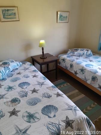 The house can accommodate up to 8 guests and comprises 4 bedrooms, and a kitchen, dining area, and lounge. The main bedroom contains a double bed. The second, third, and fourth bedrooms each contain 2 single beds.