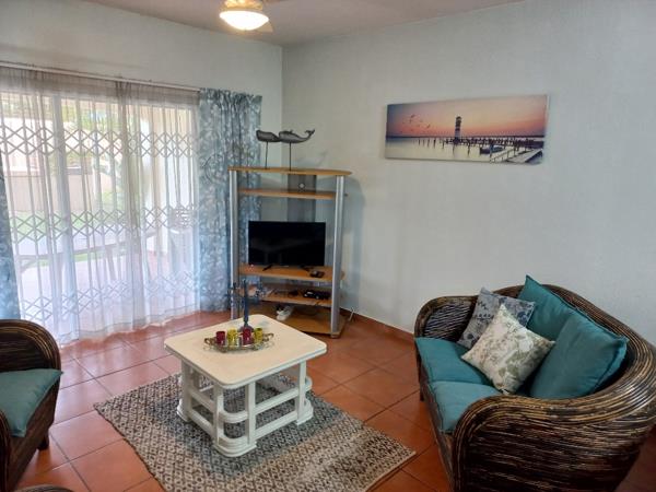 Gorgeously fully furnished 2 bedrooms, 2 bathroom unit to rent in a sought-after complex in Uvongo.Close to all amenities. Open plan kitchen, dining area, and lounge leading onto the patio overlooking a lovely garden and braai area. Communal swimming pool, braai, and kids'' play area for those lovely summer days. 24-hour CCTV monitoring. This unit has a single lock-up garage. Rent excludes water, electricity refuse and sanitation. Linen is not included. Pre-Approved clients to view.