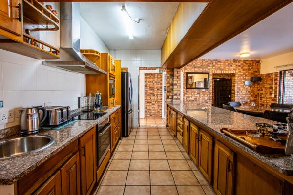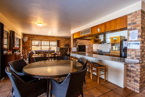 The home includes a fully equipped kitchen with a stove, oven, microwave, toaster, kettle, cutlery, crockery, fridge-freezer, and a breakfast bar with stools. For added convenience, a dishwasher and washing machine are available in the separate scullery. The lounge and dining area provide comfortable seating for dining and relaxation. For entertainment, a smart TV and free Wi-Fi are available. Guests are required to log in with their own details to stream or bring their own DStv decoder cables and a remote to connect to DStv.