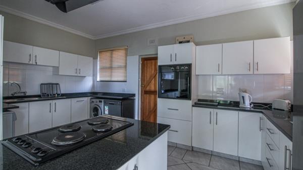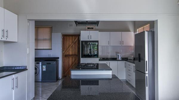 The main house features a well-equipped kitchen that includes a stove, oven, microwave, kettle, toaster, cutlery, crockery, and fridge-freezer. A dishwasher, washing machine, and tumble dryer are available in the separate scullery. The lounge and dining area offer comfortable seating for guests to dine and relax, and for entertainment, a TV with selected DStv channels and access to free Wi-Fi are available. The flatlet has a kitchenette equipped with a 2-plate stove, microwave, kettle, and fridge-freezer, as well as a lounging area.