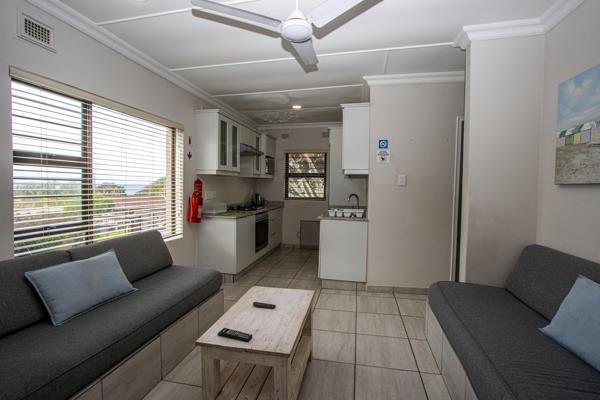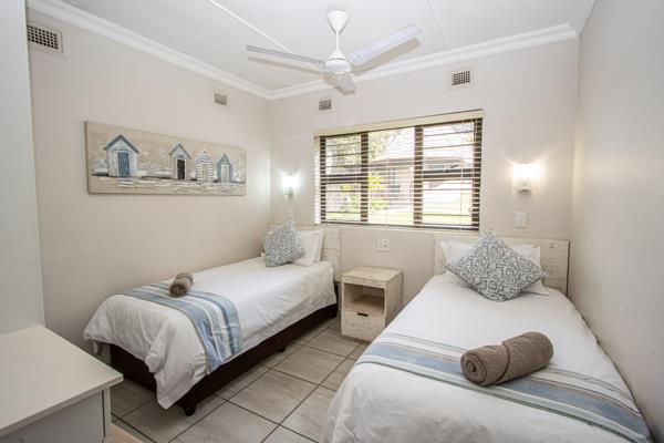 Banana Beach Club B7 is a stand-alone cottage and has a fully equipped kitchen, and lounge area, with a TV, The lounge contains a couch that can accommodate 2 small children under 10 years old. And has 2 bedrooms with a queen bed in the main bedroom and 2 single beds in the second and a veranda with braai facility as well as covered parking.