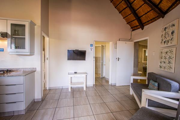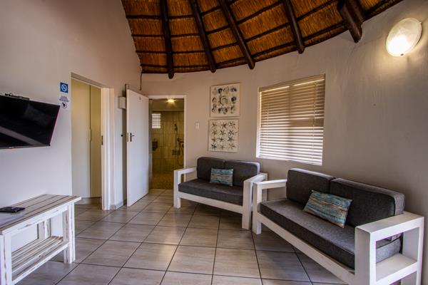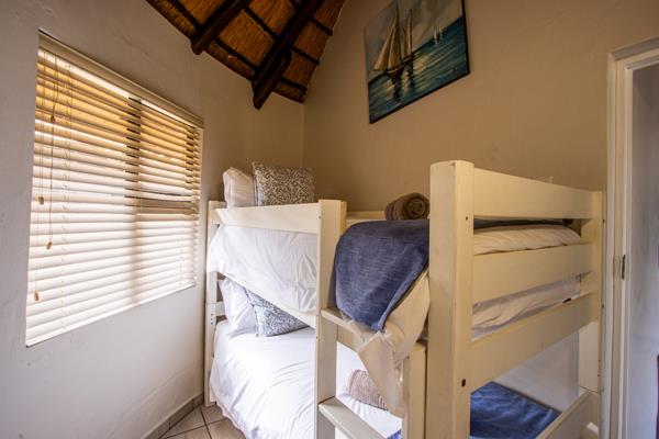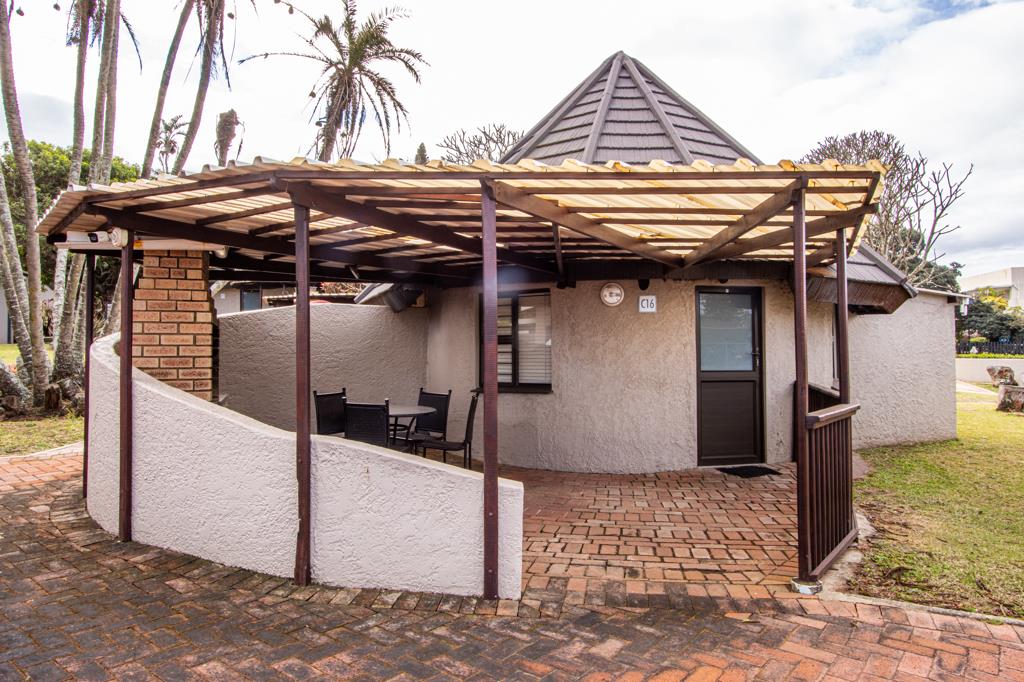 Banana Beach Club C16 is a Rondavel and has a fully equipped kitchen, and lounge area, with a TV, And has 2 bedrooms with a Queen bed in the main bedroom and 1 bunk bed in the second bedroom, and 2 bathrooms, a veranda with a braai facility as well as parking.