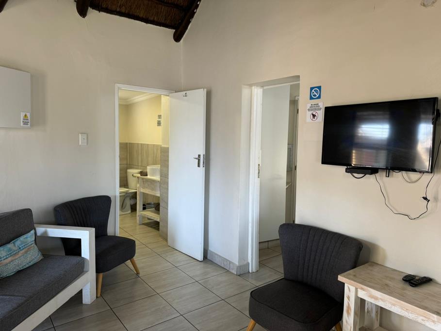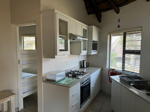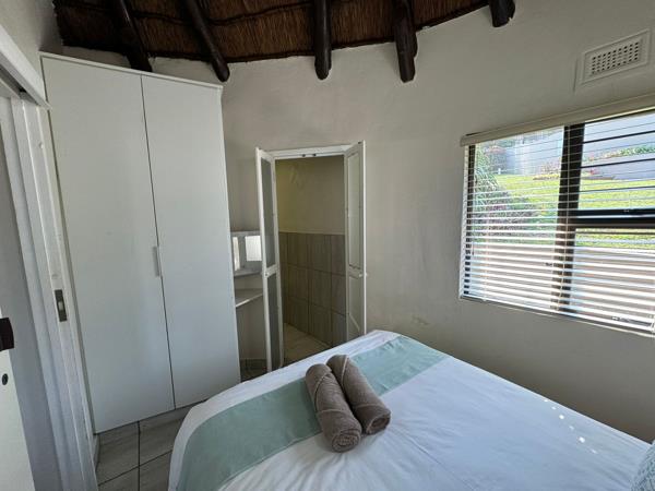 Banana Beach Club C3 is a Rondavel and has a fully equipped kitchen, and lounge area, with a TV, WIFI and a Smart box , And has 2 bedrooms with a Queen bed in the main bedroom and 1 bunk bed in the second bedroom, and 2 bathrooms, a veranda with a braai facility as well as covered parking.
