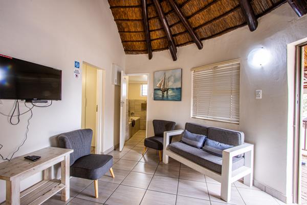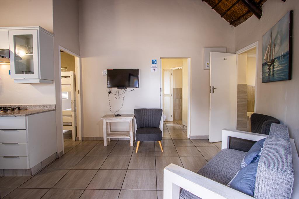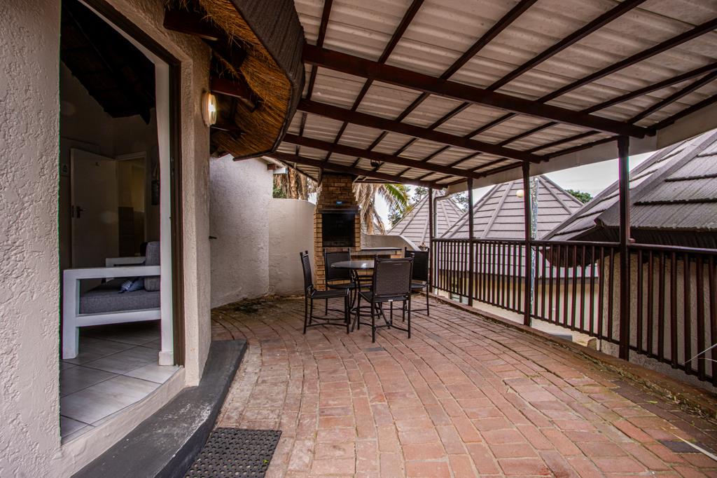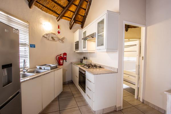 Banana Beach Club C2 is a Rondavel and has a fully equipped kitchen, and lounge area, with a TV, WIFI, and a Smart box, It has 2 bedrooms with a Queen bed in the main bedroom and 1 bunk bed in the second bedroom, and 2 bathrooms, a veranda with a braai facility as well as covered parking.