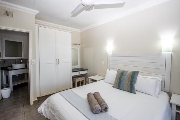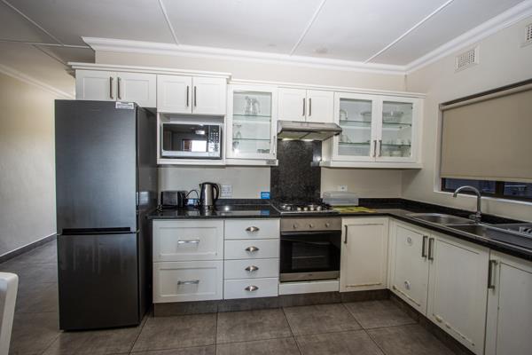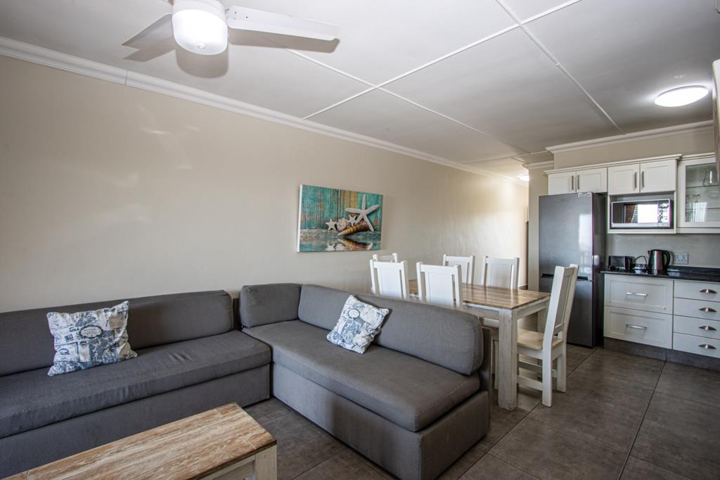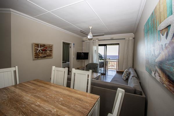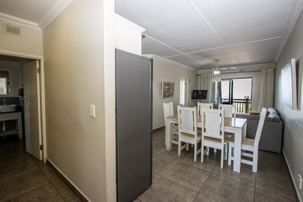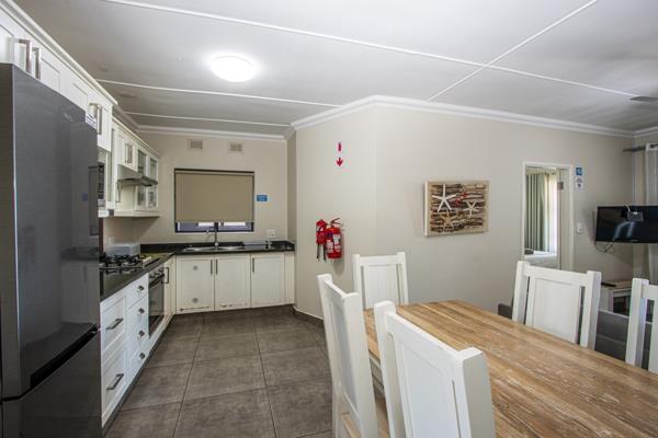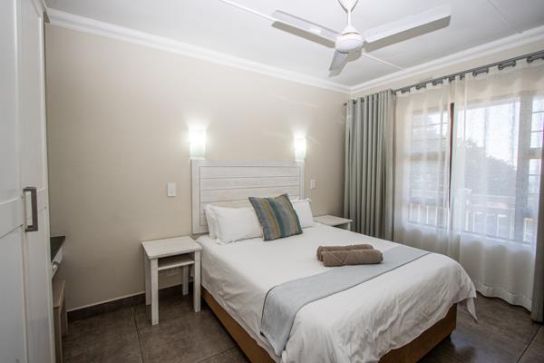 Banana Beach Club D11 Chalet is on the first floor and has a fully equipped kitchen, and lounge area, with a TV, The lounge contains a couch that can accommodate 2 small children under 10 years old. And has 2 bedrooms with a double bed in the main bedroom and 2 single beds in the second bedroom, and 2 bathrooms, a veranda with a braai facility as well as covered parking.