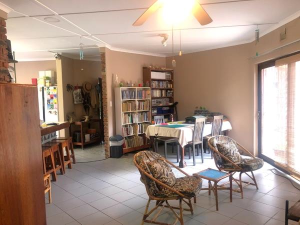 The kitchen is impressively large with plentiful built-in cupboards, expansive counter space, multiple electrical outlets, and a central island that doubles as a breakfast nook with bar stools. Three family or guest bedrooms are well-sized and fitted with built-in cupboards and ceiling fans, serviced by a full bathroom with bath, shower, basin, and toilet. Upstairs, the main bedroom offers exceptional space and features his-and-hers walk-through cupboards leading into a full en-suite bathroom. This main suite opens out onto an extended patio and braai area with a built-in braai and worktop, enclosed with Trellidor doors that open on both sides and provide direct access to the courtyard. Additional features include double JoJo tanks, a separate JoJo tank with a water pump connected to the home, a fully installed Hik 16-camera surveillance system with monitor, an automated gate, and a Wendy house ideal for storage or creative use. This home is truly worth viewing.