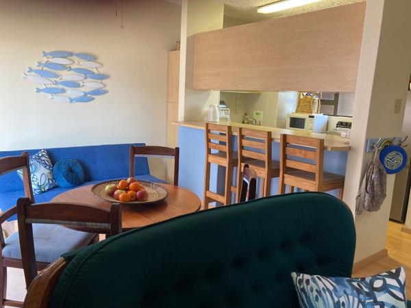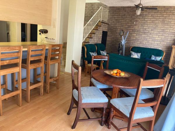 Just a stones throw away from the beach, with a d deck that allows for private entertaining/braaiing and gives a partial sea view from the lounge, kitchen, dining room and bedrooms.