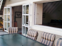 Open plan lounge and dining room leading onto tiled balcony with wide folding windows for easy entertaining.
