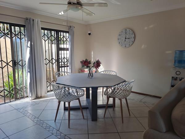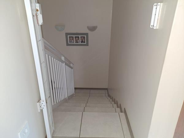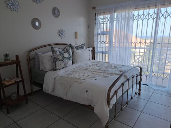 Lovely spacious duplex in central Scottburgh. 3 bedrooms and 2 bathrooms. Large patio off lounge. Sea view from main bedroom. Swimming pool in complex.