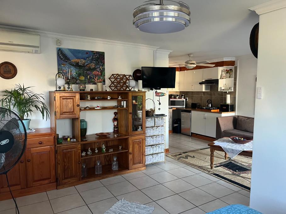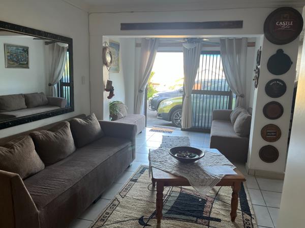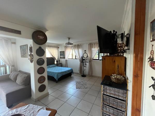 Situated below home and in a secure complex this well looked after property is perfect for a couple or single person. Fully furnished with bathrooms and open living bedroom area off small, fitted kitchen with gas hob. Water and electricity from R800 per month. Secure inside parking with small back area with built-in braai. Wifi included with package.